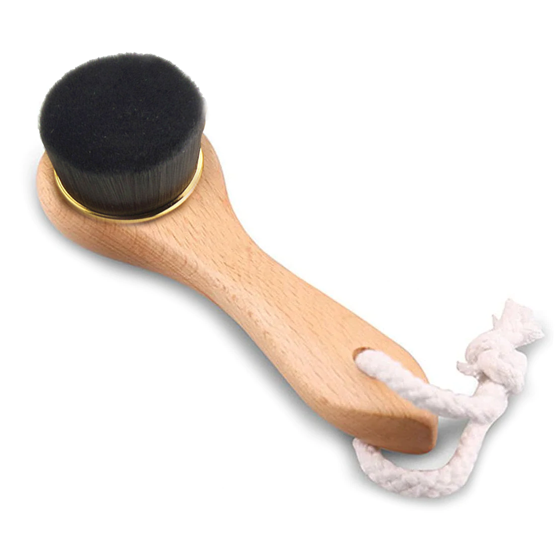 Super-soft facial brush, designed to awaken your skin. Handheld wooden brush with massaging waves are safe for sensitized skin and sweep away dead surface cells for instant exfoliation.